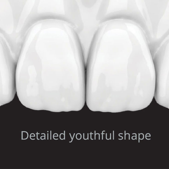 Bespoke smiles are designed to emulate the organic contours and proportions found in natural dentition. However, these shapes serve merely as a starting point. Our skilled artisans possess the expertise to create any custom shape you envision, ensuring the end result your patient craves.